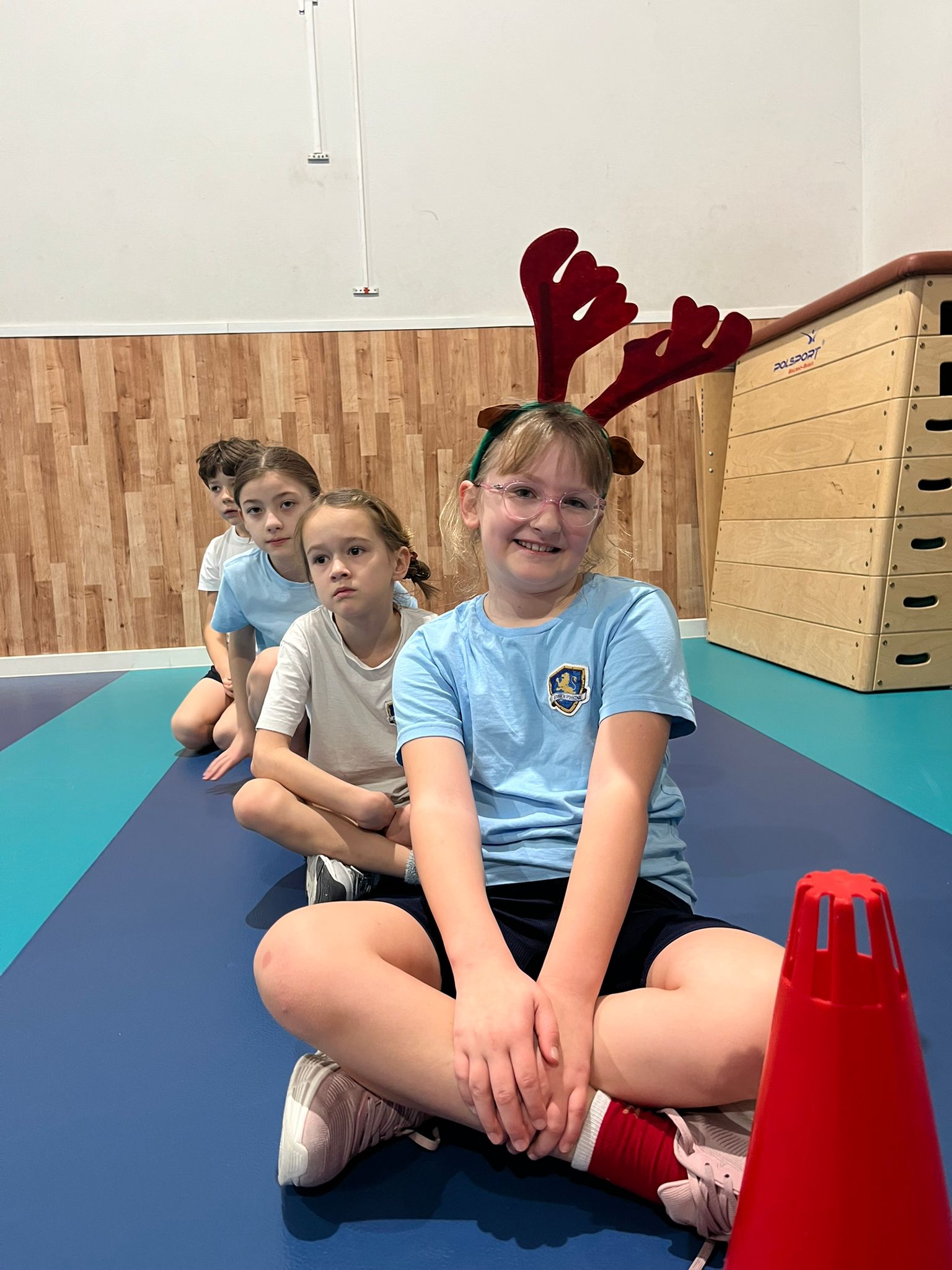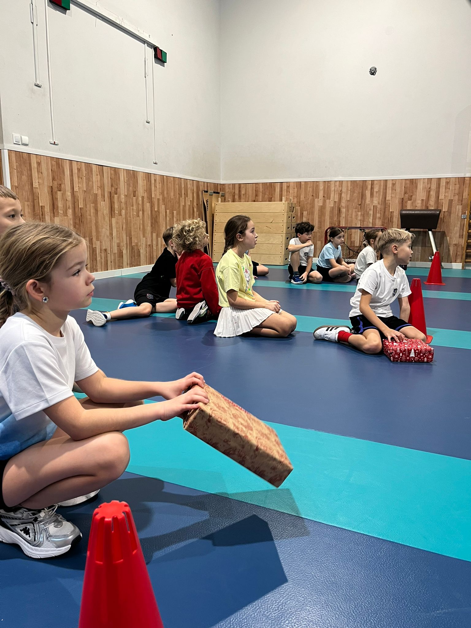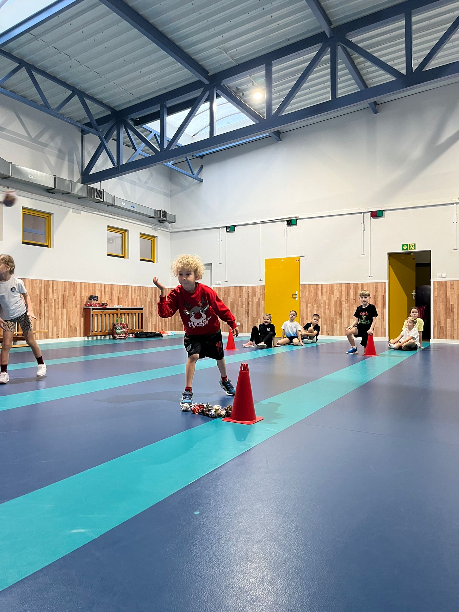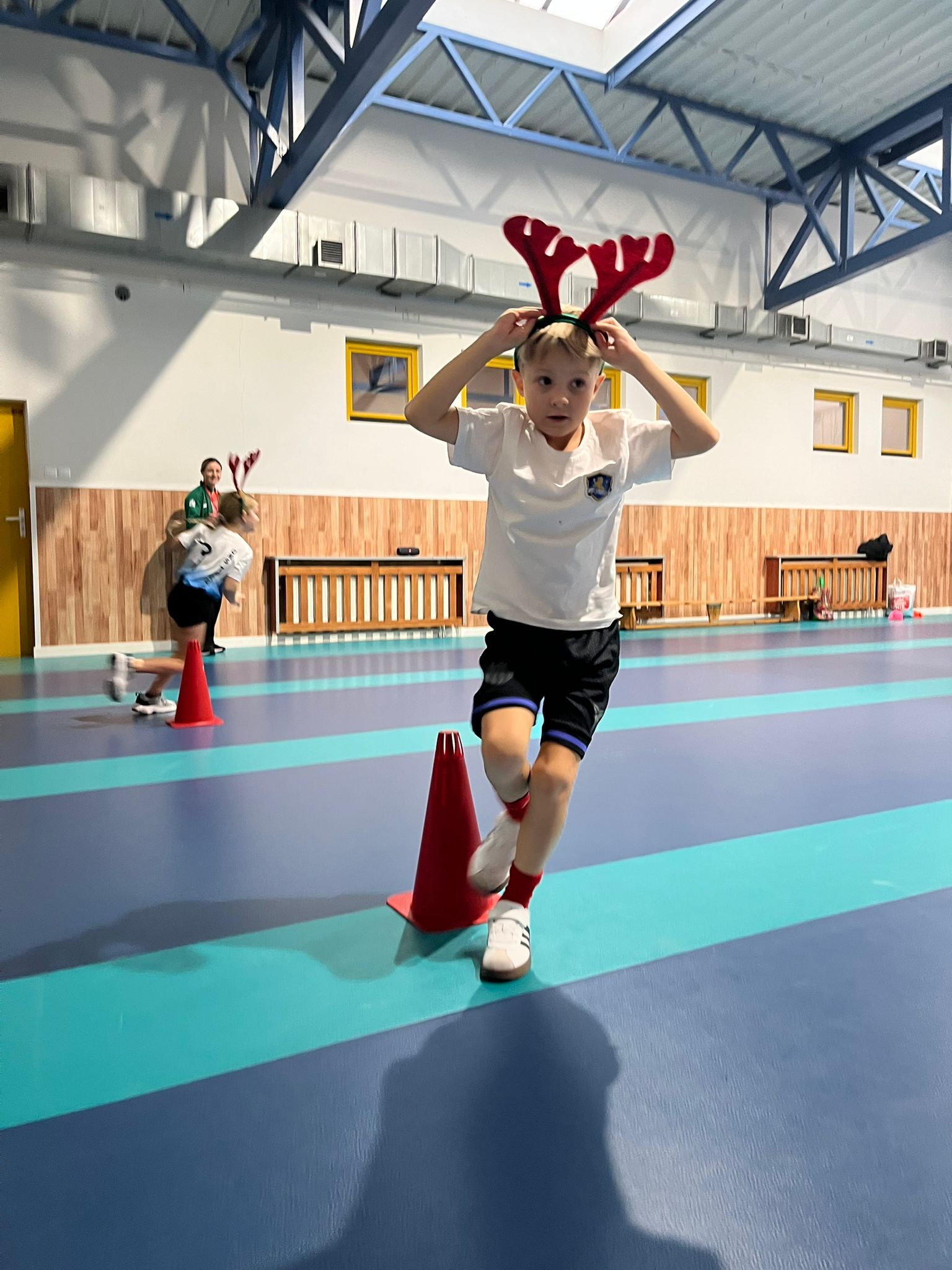W ostatnim tygodniu przed świętami na lekcjach wychowania fizycznego klas 0-3 uczniowie brali udział w świątecznych wyścigach rzędów. Wśród konkurencji znalazły się m.in.: ubieranie choinki 🎄, bieg reniferów 🦌, bieg z prezentem – przez dzieci nazwany wyścigiem Grincha i Mikołaja 🎁 oraz rzut śnieżką do celu ❄.