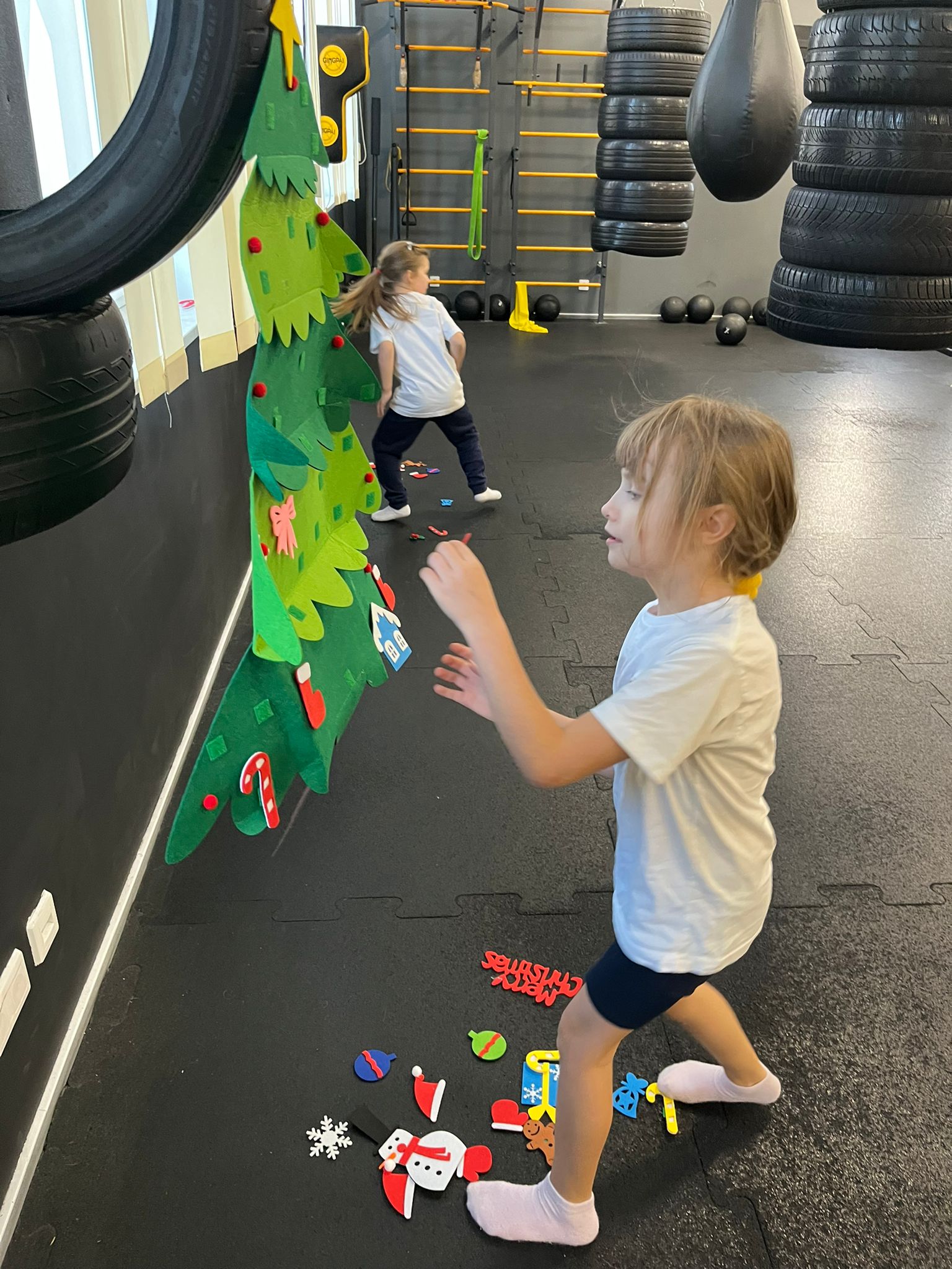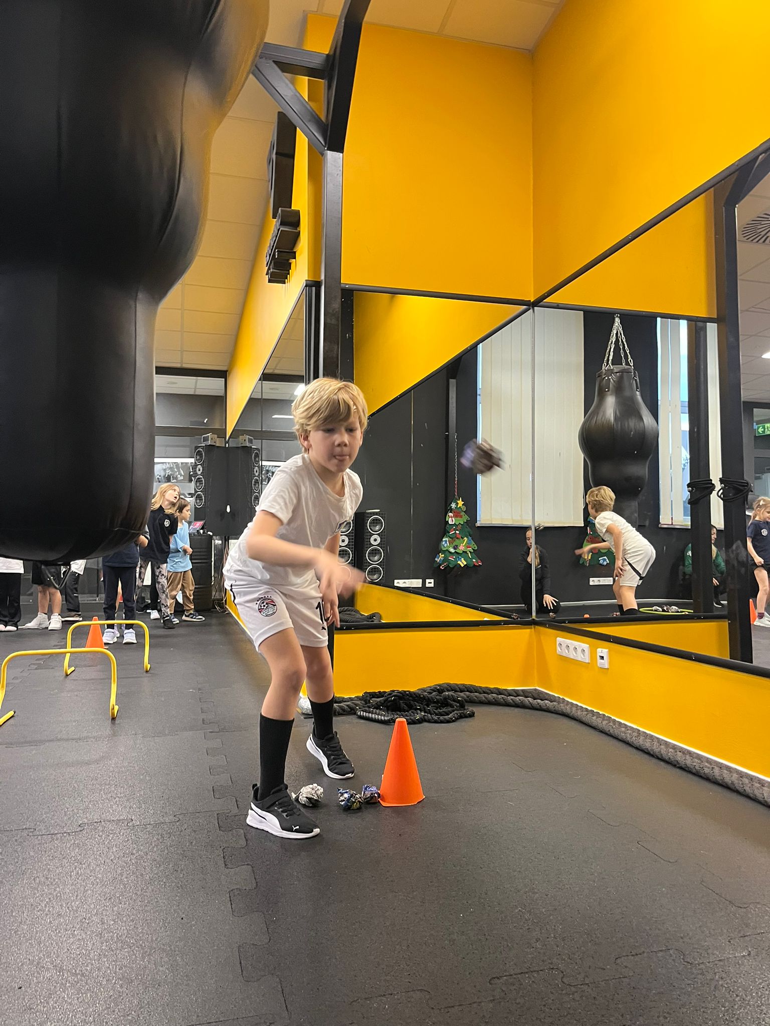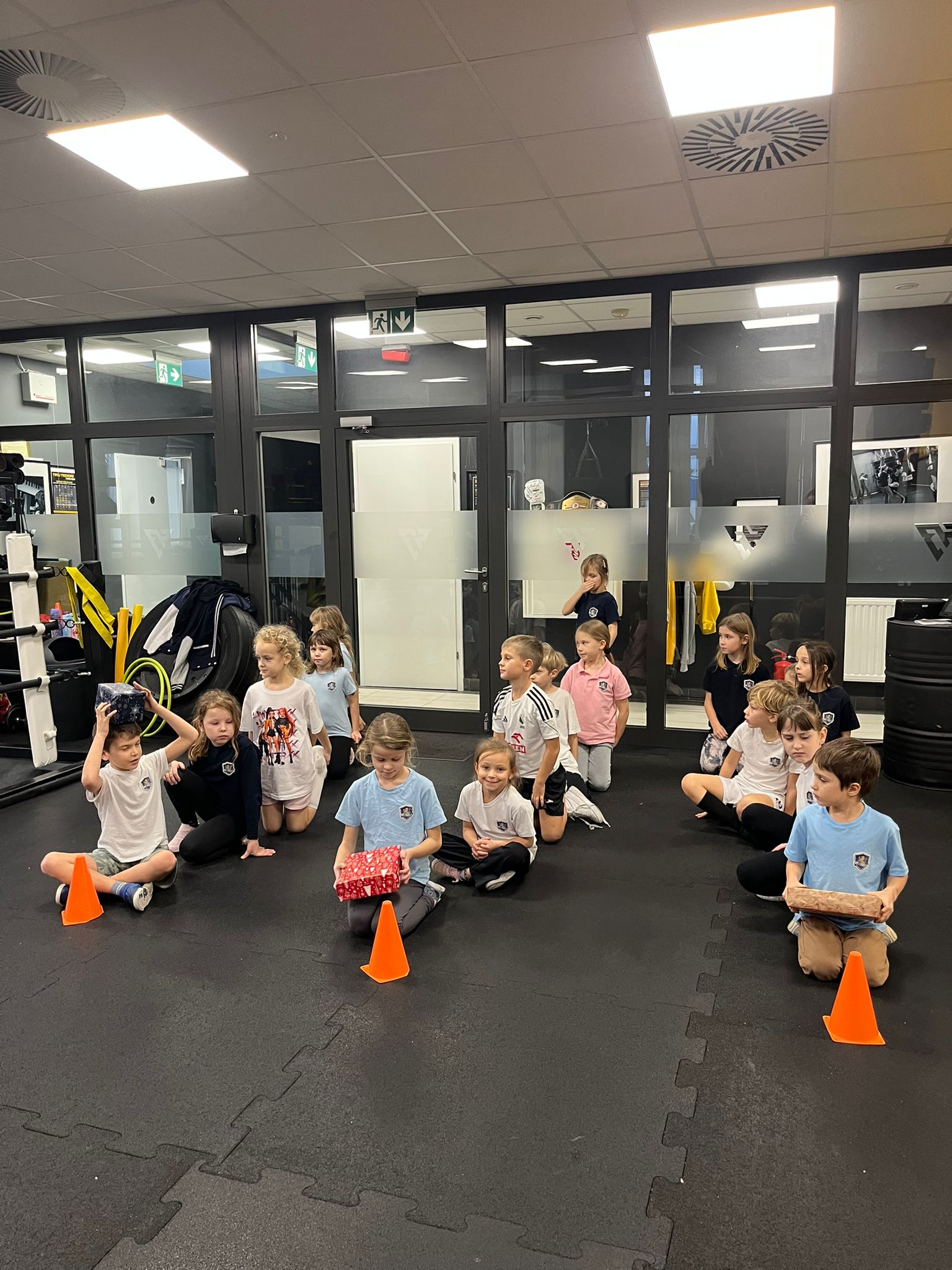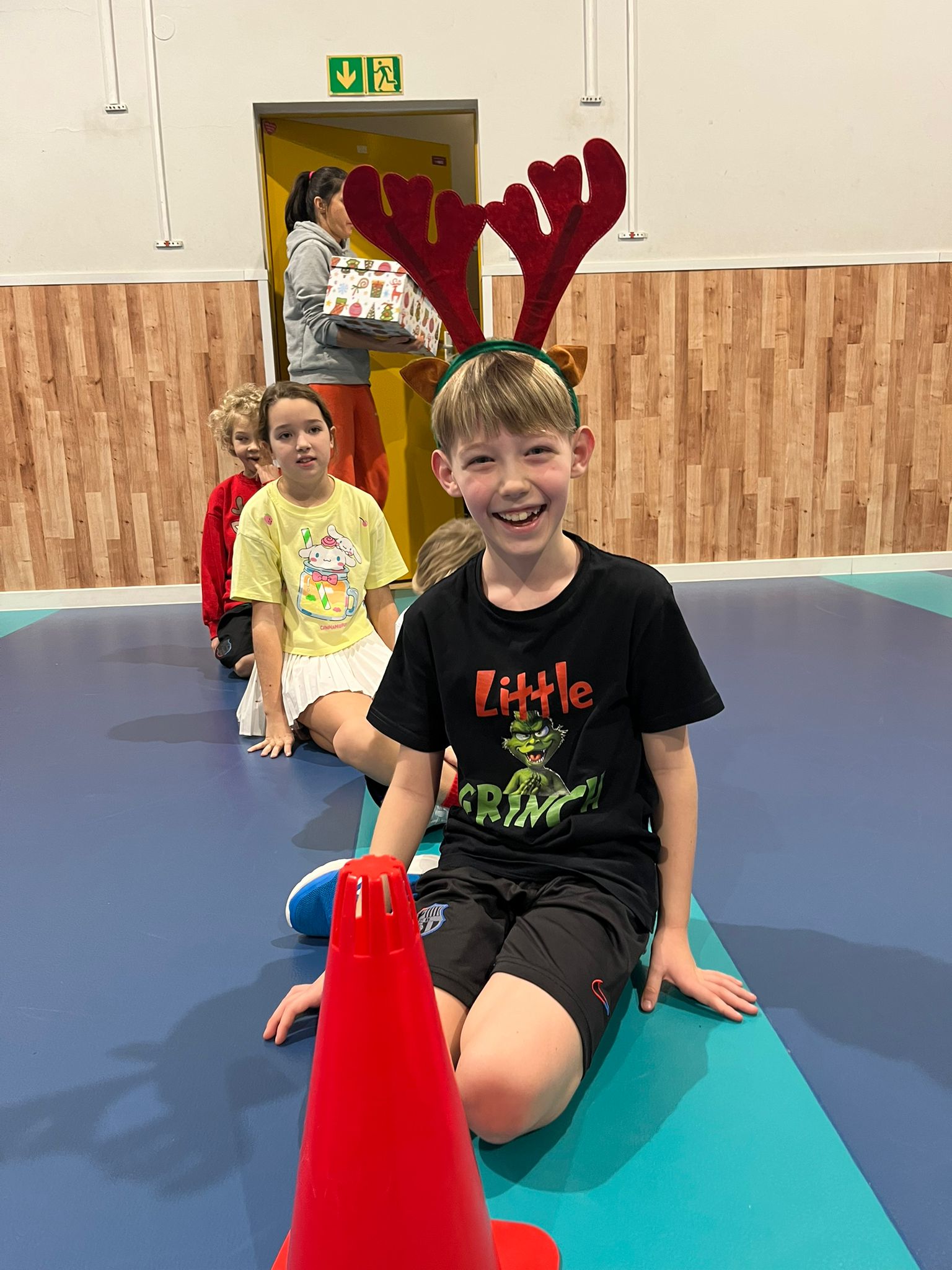 W ostatnim tygodniu przed świętami na lekcjach wychowania fizycznego klas 0-3 uczniowie brali udział w świątecznych wyścigach rzędów. Wśród konkurencji znalazły się m.in.: ubieranie choinki 🎄, bieg reniferów 🦌, bieg z prezentem – przez dzieci nazwany wyścigiem Grincha i Mikołaja 🎁 oraz rzut śnieżką do celu ❄.