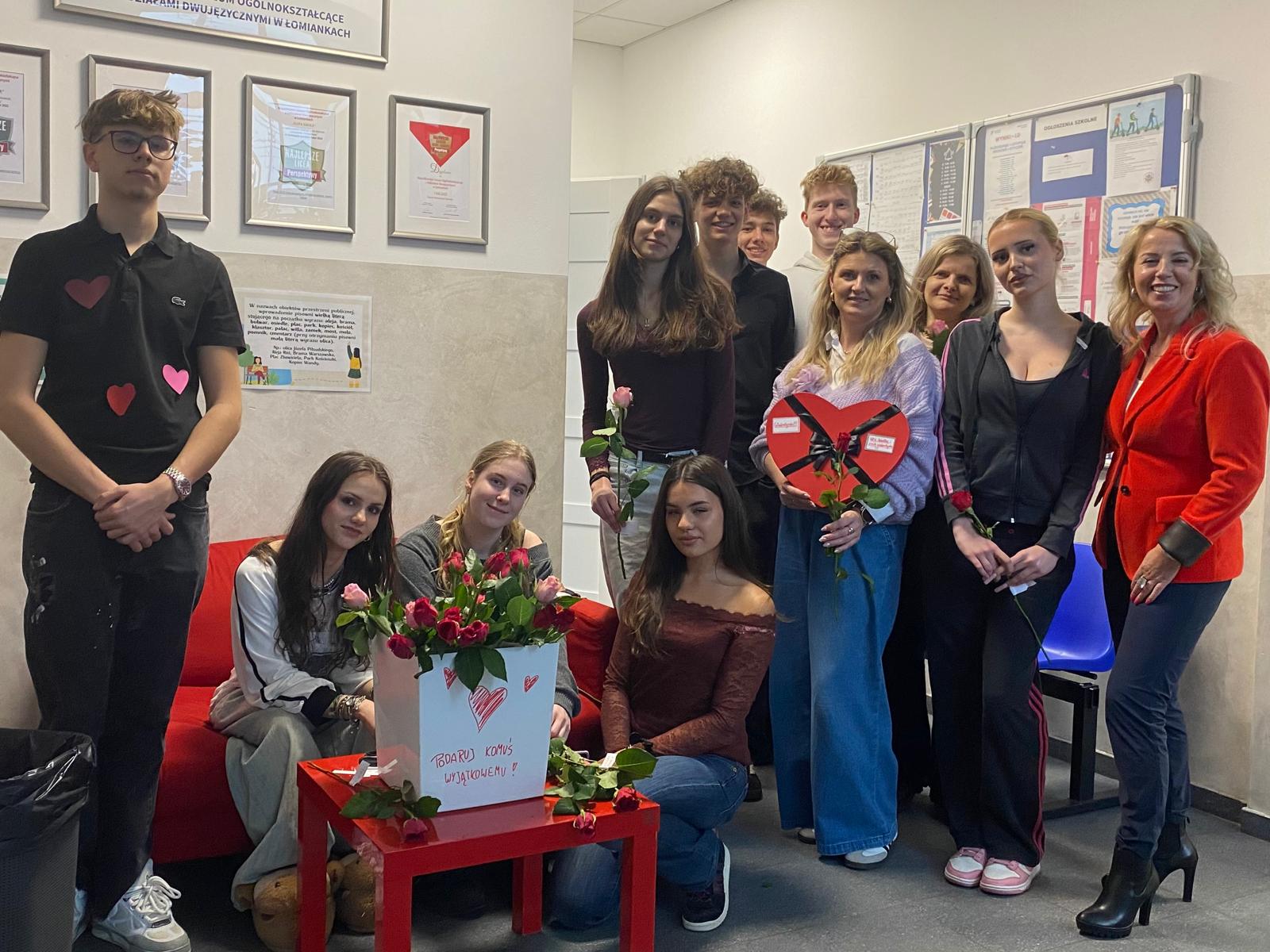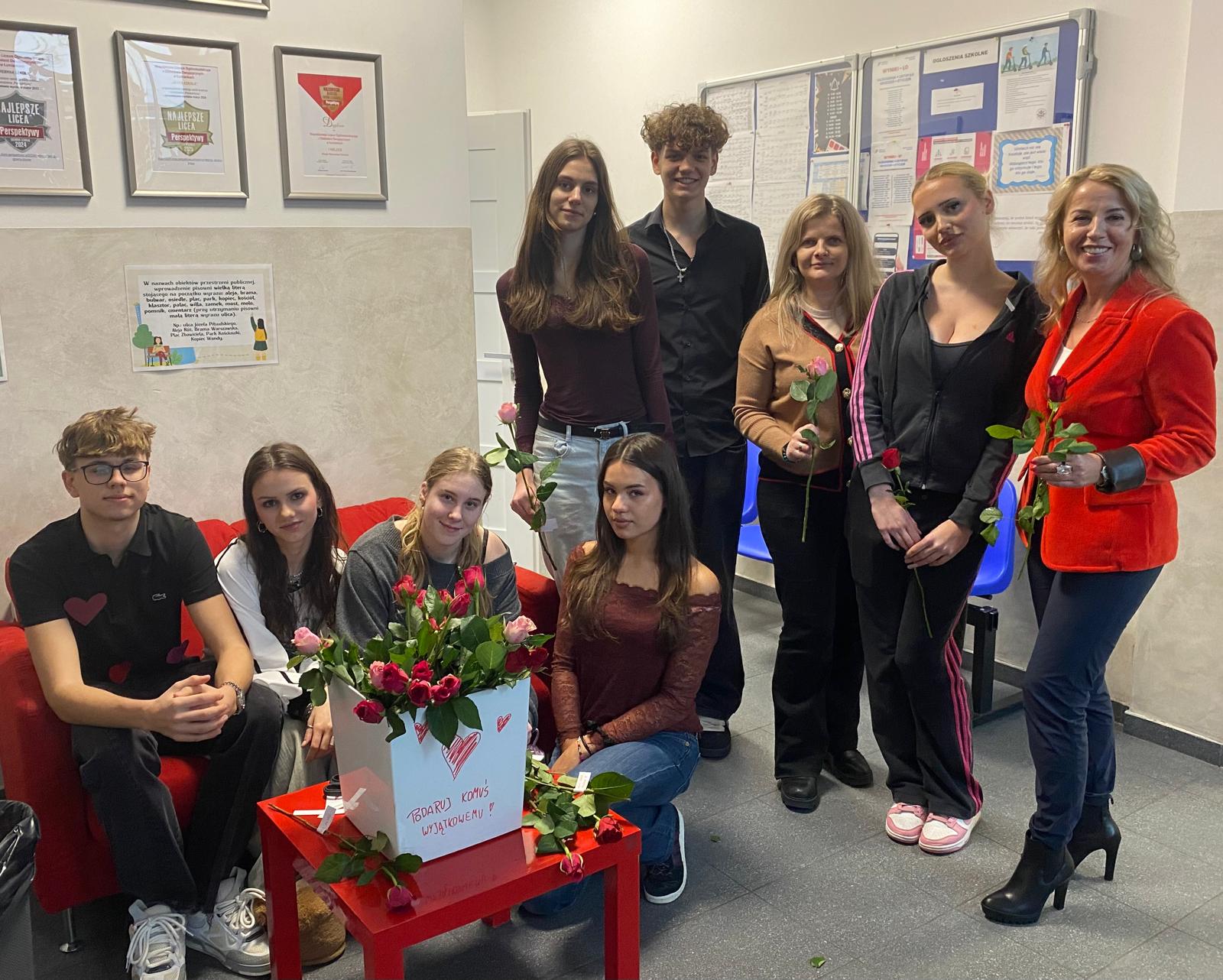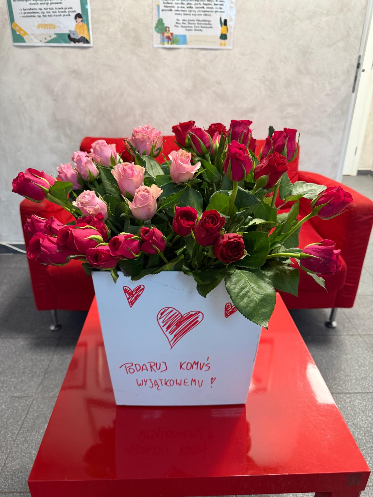 Nie zabrakło także poczty kwiatowej.🌹 Piękne róże trafiły nie tylko do uczniów, ale również do naszych nauczycieli.