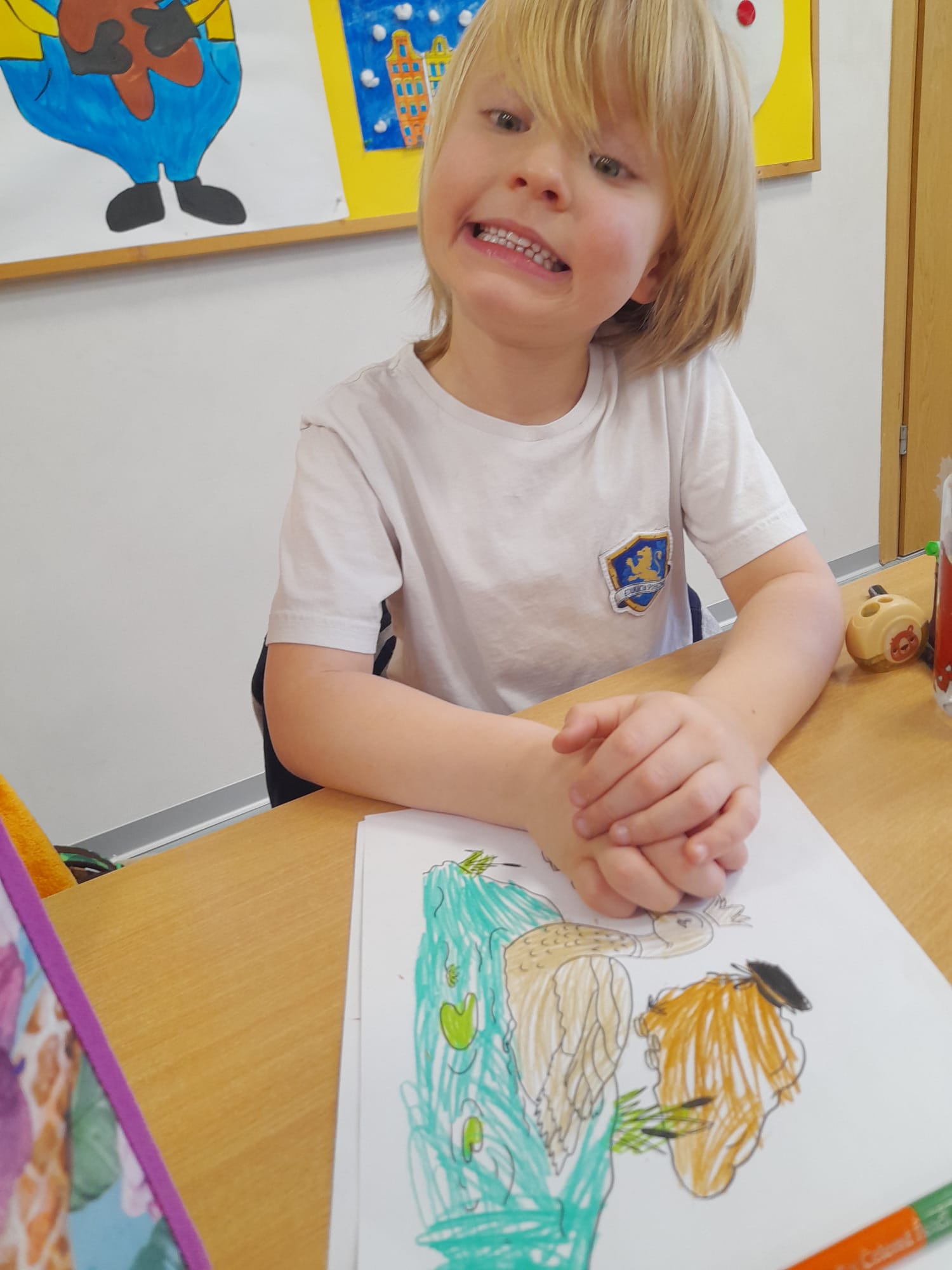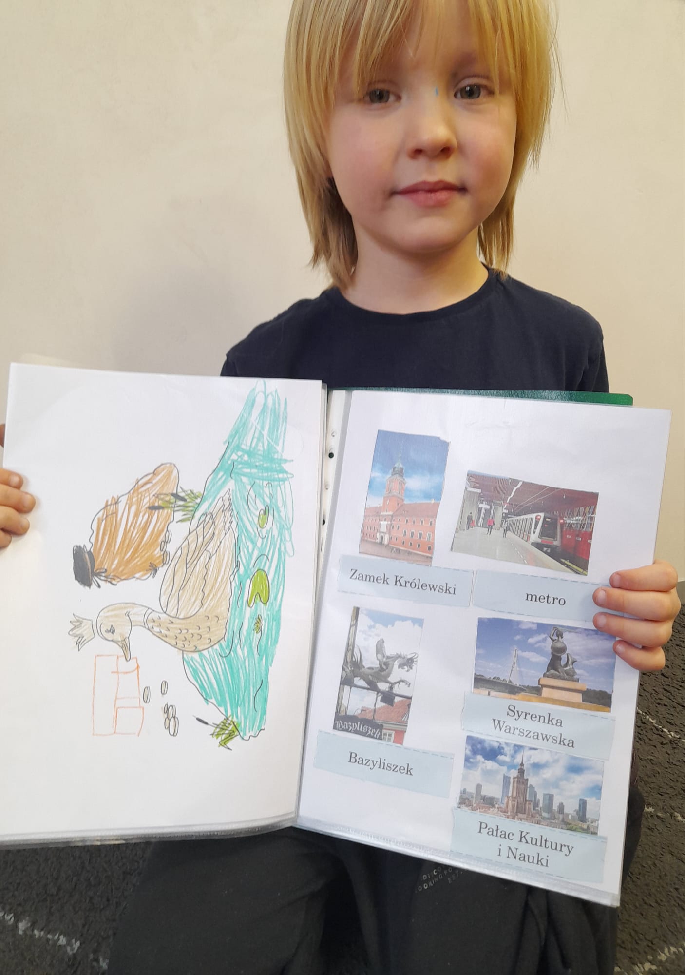 Podczas zajęć przenieśliśmy się do świata legend. W Warszawie spotkaliśmy tajemniczego Bazyliszka 🐉 oraz dzielną Syrenkę Warszawską, a także poznaliśmy historię o Złotej Kaczce. 🦆 Dzieci z ogromnym zainteresowaniem słuchały opowieści, a następnie dzieliły się swoimi wrażeniami i ilustracjami do legend.