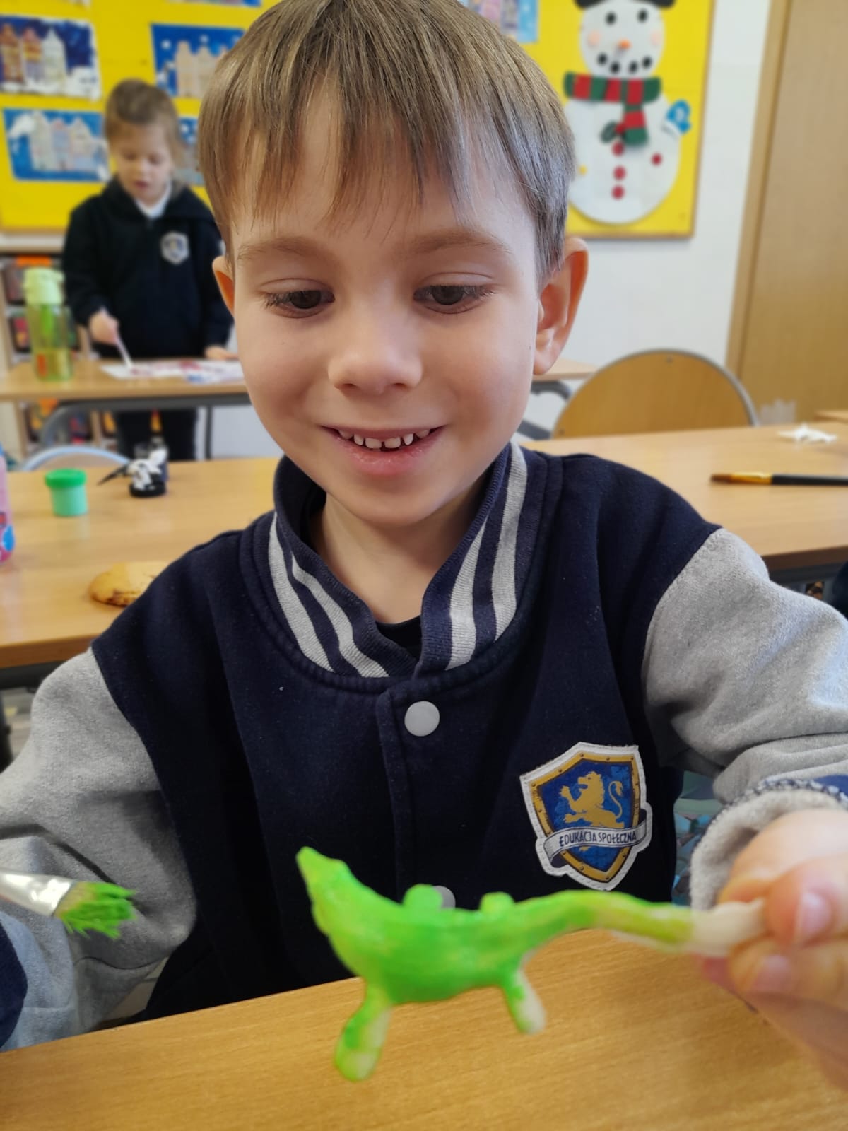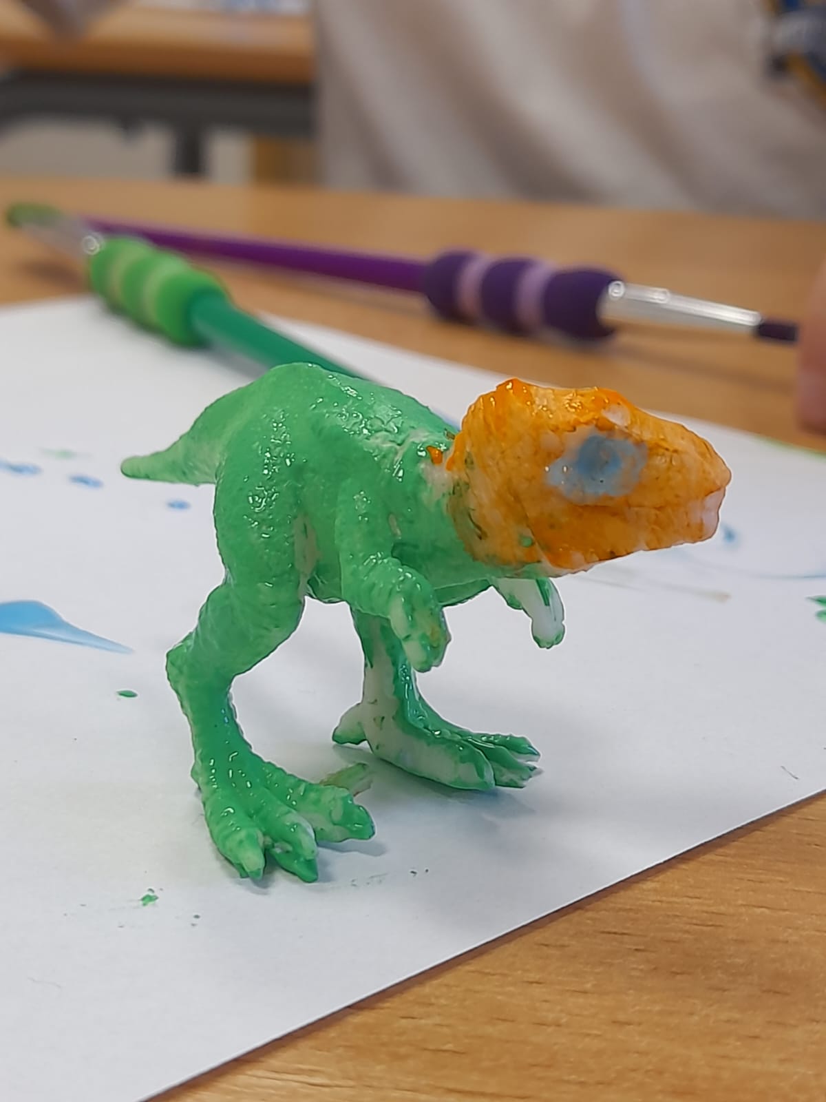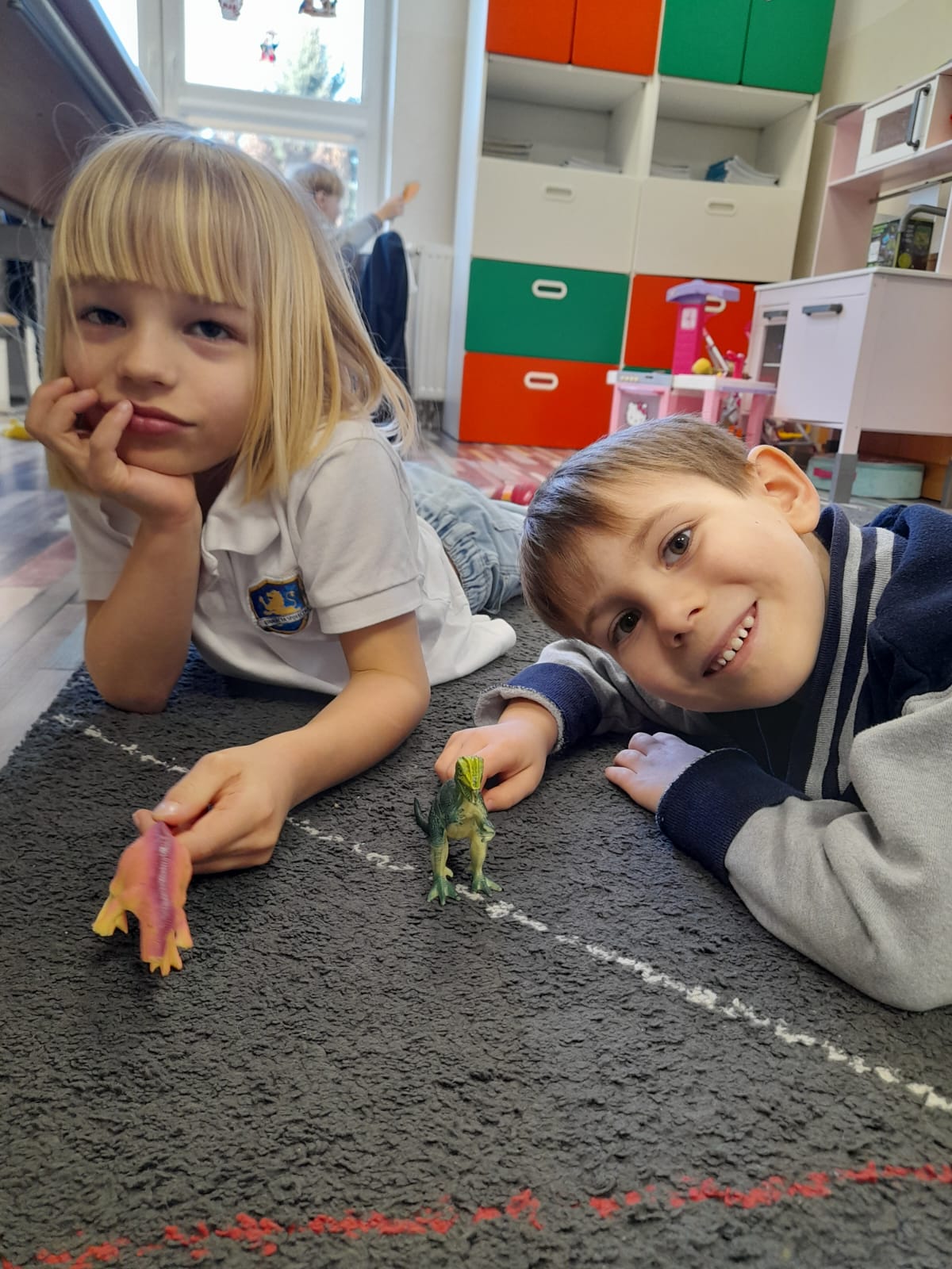 Na zakończenie dzieci swobodnie bawiły się figurkami dinozaurów, tworząc własne historie i scenariusze zabaw.🦖 Aktywność ta sprzyjała rozwijaniu wyobraźni, kreatywności oraz budowaniu relacji rówieśniczych.👧👦🦕