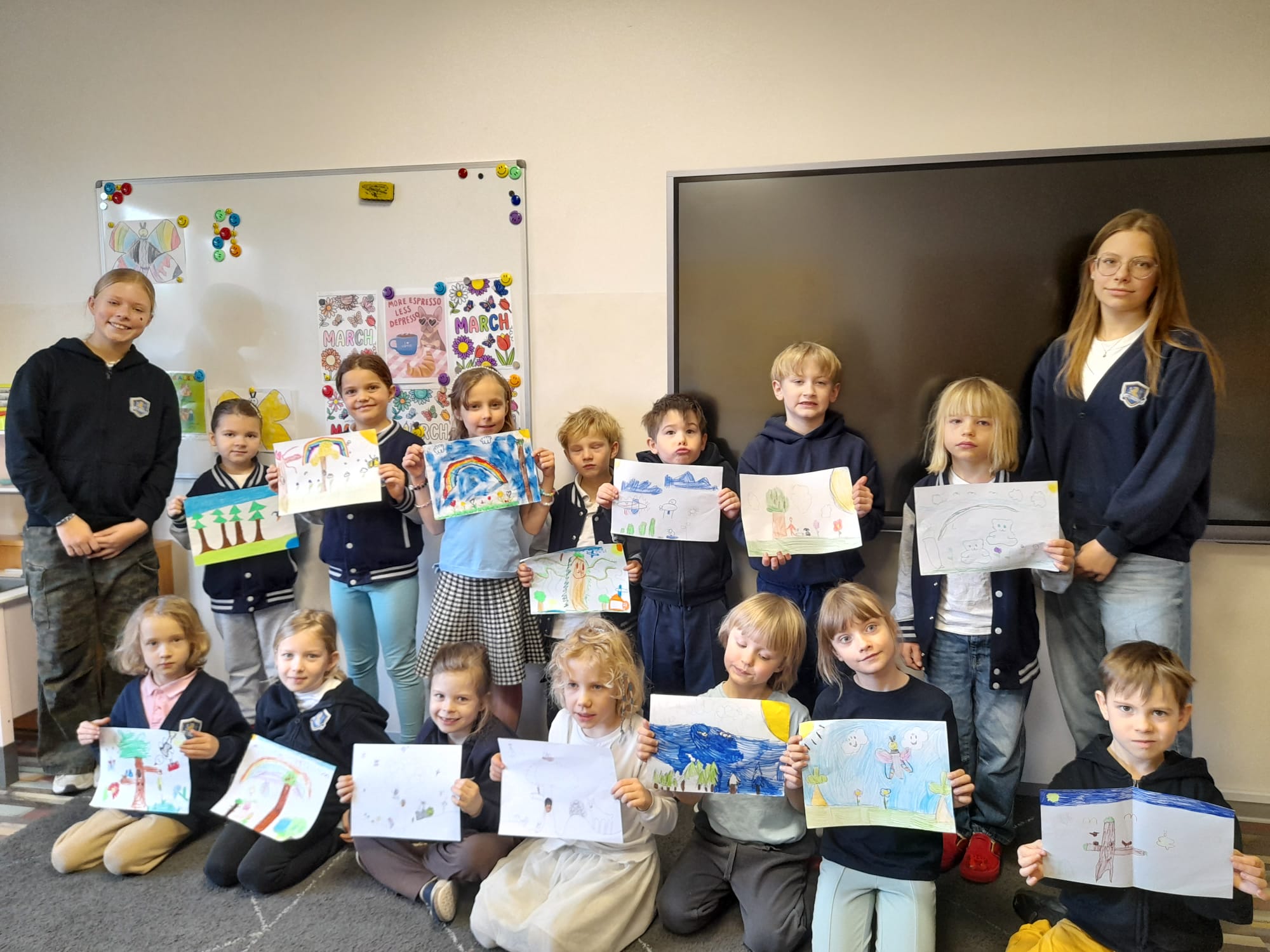 Spotkanie przebiegało w bardzo ciepłej i radosnej atmosferze. Dzieci z zerówki z ogromnym zainteresowaniem słuchały starszych koleżanek, a ich historie były dla nich prawdziwą inspiracją. Takie zajęcia pokazują, jak wielką wartość ma tutoring rówieśniczy – starsi uczniowie mogą być dla młodszych wspaniałym przykładem i motywacją do rozwijania własnych zainteresowań. 🎓📖👨🎓