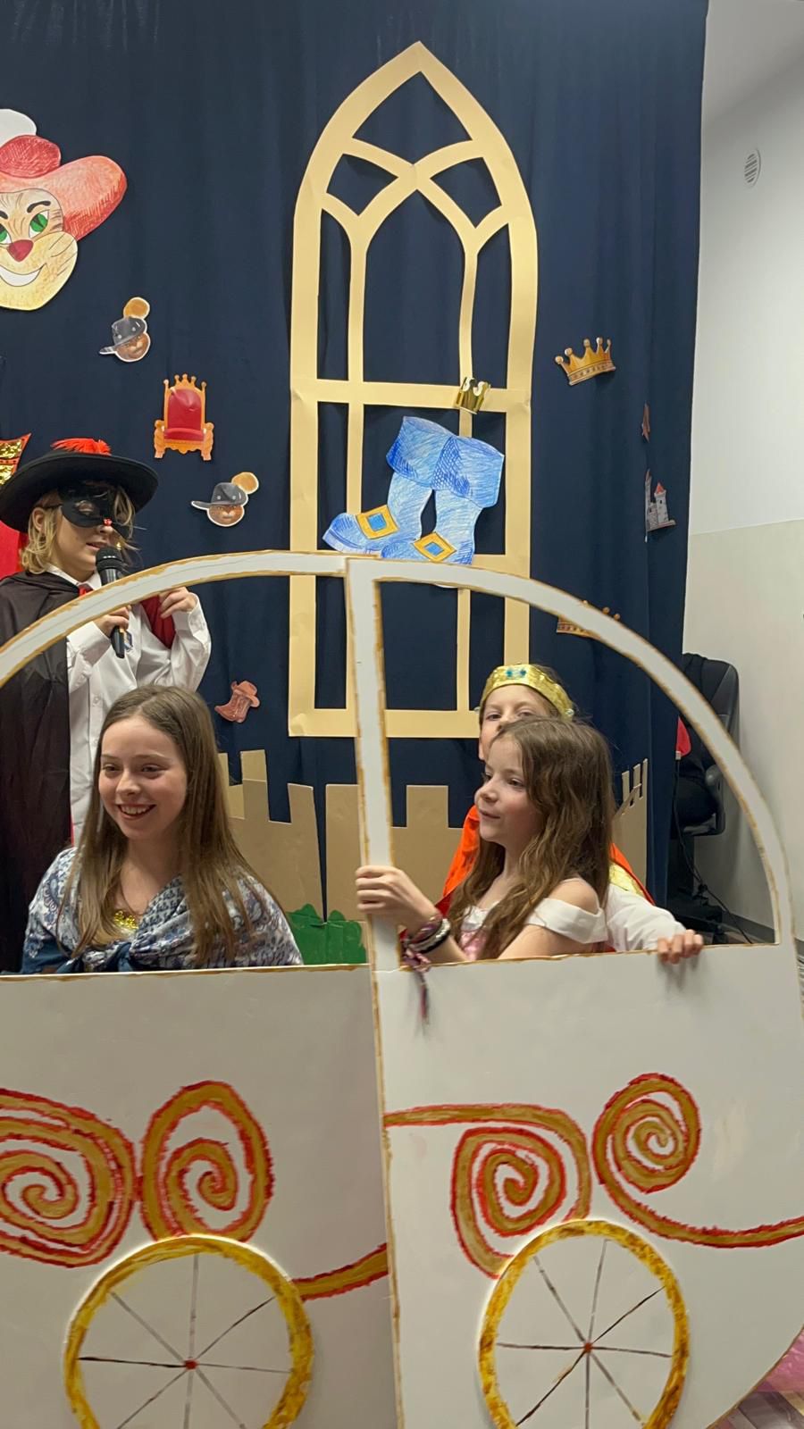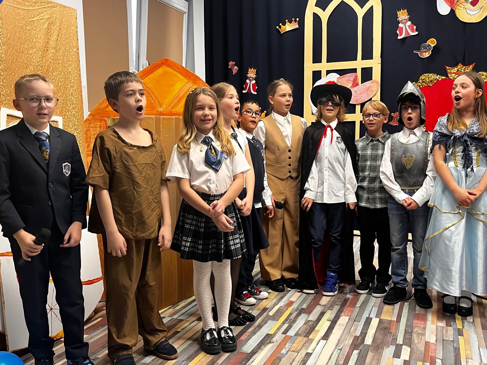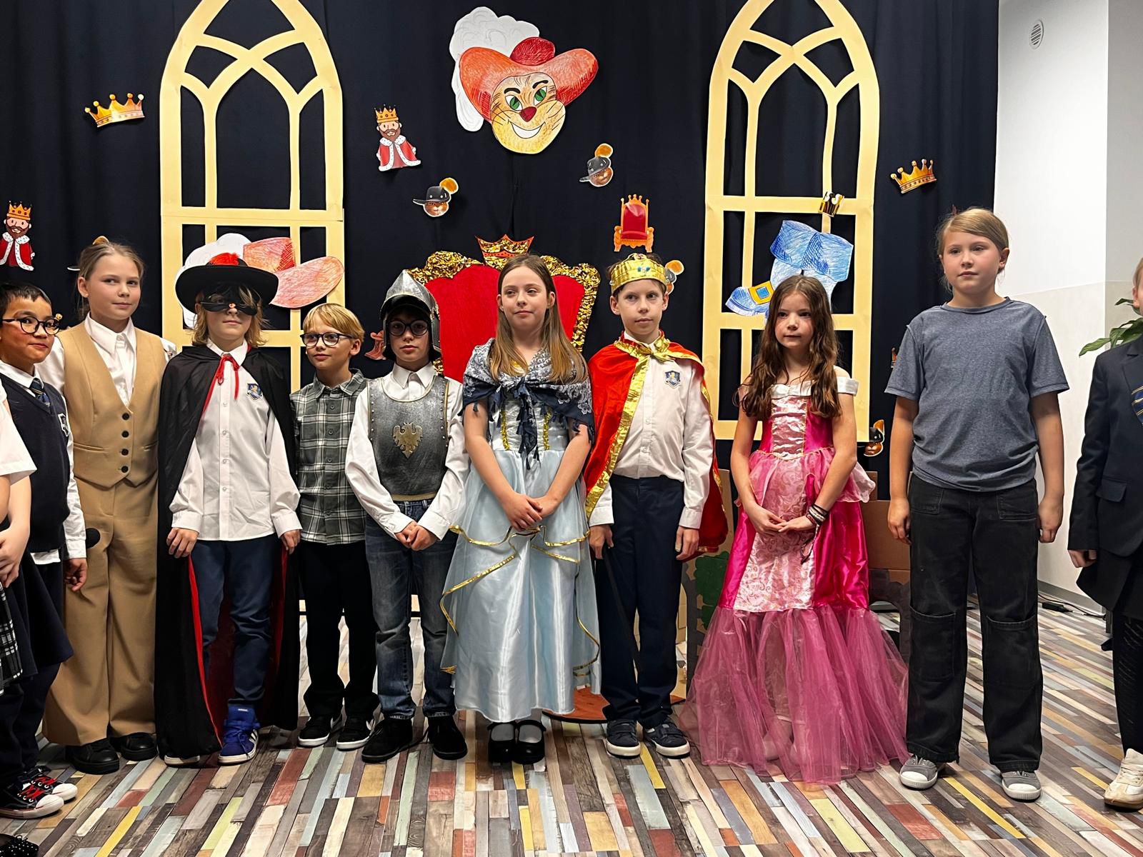Druga część minikonferencji miała charakter artystyczny. Uczniowie wystąpili na scenie jako aktorzy w przedstawieniu „Puss in Boots”. Wszyscy zaprezentowali się w pięknych, starannie przygotowanych kostiumach, które wspaniale prezentowały się na scenie. Warto podkreślić, że niemal wszystkie elementy scenografii zostały stworzone własnoręcznie przez uczniów!